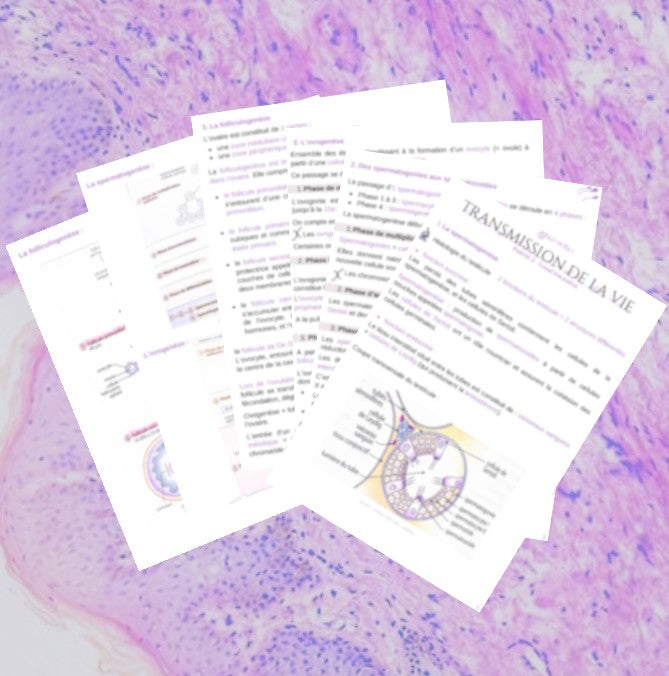 Dans cette fiche que vous recevrez immédiatement par mail en format PDF, vous retrouverez toute la gamétogenèse (chez l'homme et chez la femme) avec des schémas récapitulatif que vous pouvez retrouvez dans le manuel Reflexe ST2S terminale de Nathan.